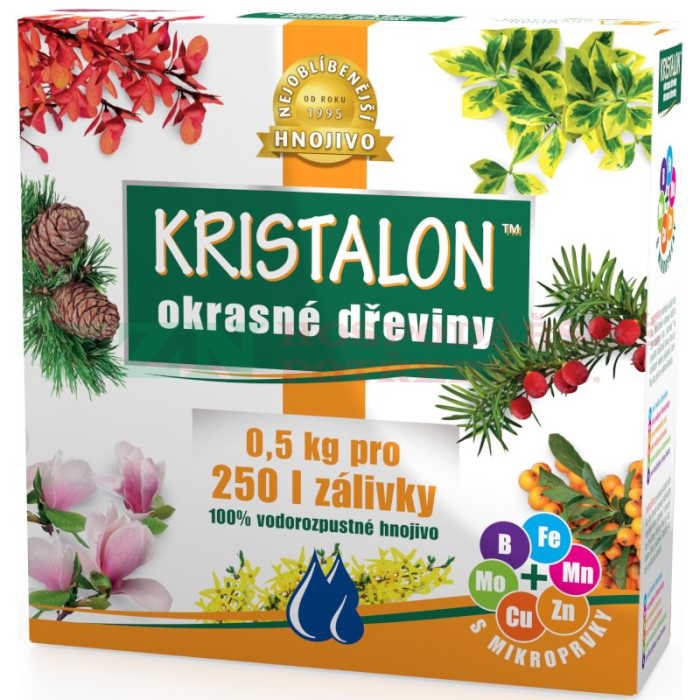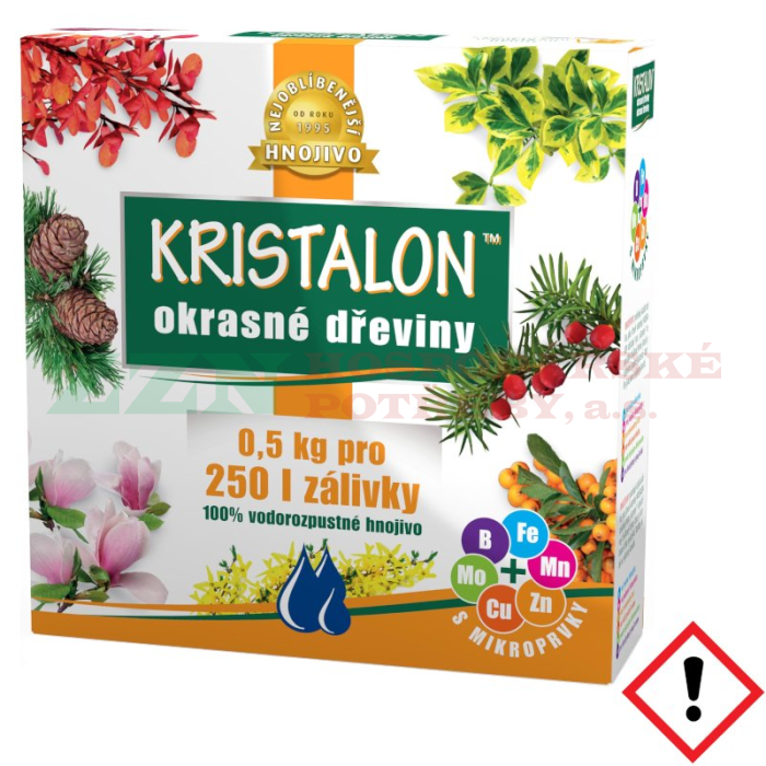KRISTALON Okrasné dřeviny je krystalické ES hnojivo, vodorozpustné a určené pro přihnojování okrasných dřevin, růží, okrasných keřů v období vegetace do konce srpna.