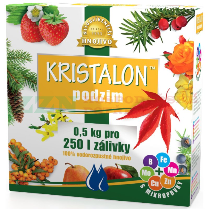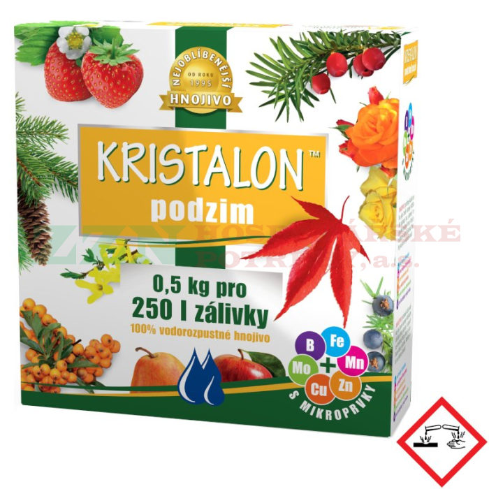 KRISTALON Podzim je speciální krystalické, vodorozpustné ES hnojivo, které díky vysokému obsahu draslíku podporuje lepší vyzrávání pletiv a bezproblémové přezimování rostlin, chrání před vymrzáním.