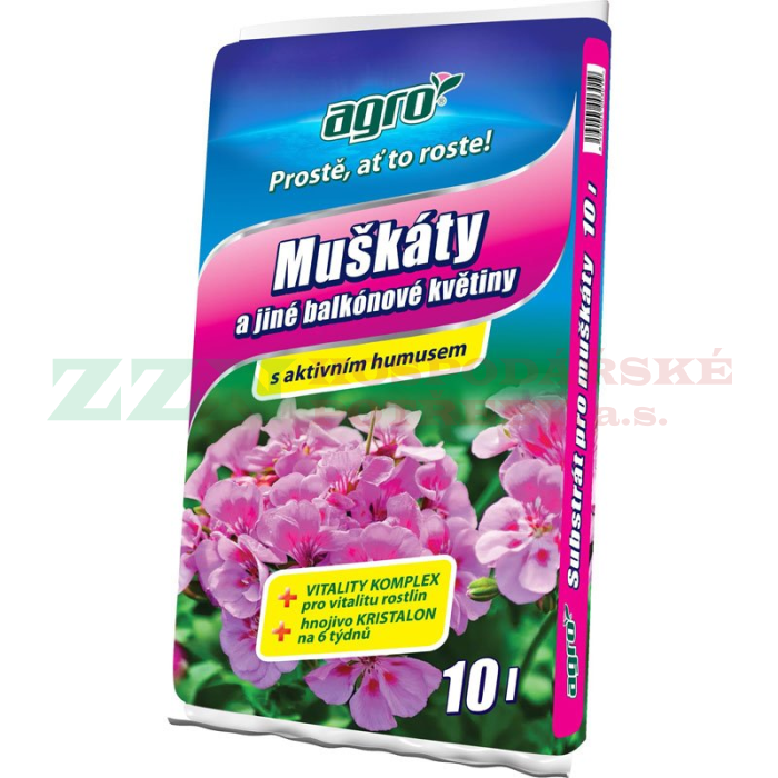 AGRO Substrát pro muškáty a jiné balkónové květiny je speciálně vyvinut pro potřeby pěstování balkónových rostlin, které potřebují k růstu a bohatému kvetení vysokou dávku živin.