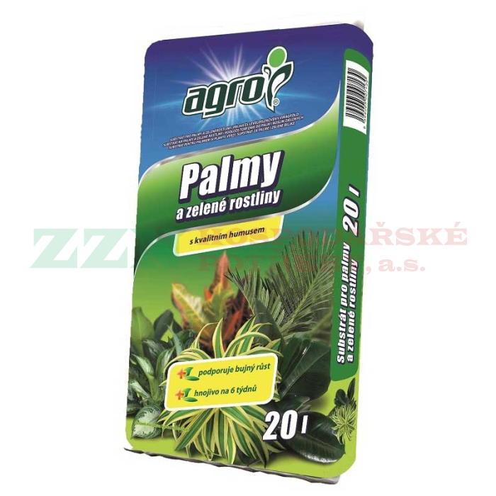 AGRO Substrát pro palmy a zelené rostliny svým složením a přidaným účinným hnojivem podporuje zdravý růst pokojových rostlin, u nichž je rozhodující kvalita a barva listů.