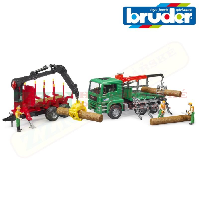 • Přepravník na dřevo firmy Bruder je navíc vybaven otočným nakládacím jeřábem a pojme čtyři kusy dlouhých klád, které jsou součástí balení.