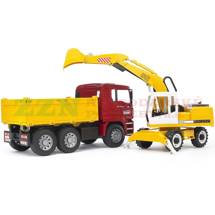 Set firmy BRUDER skládající se z nákladního auta MAN TGA sklápěčky a kolového bagru Liebherr!