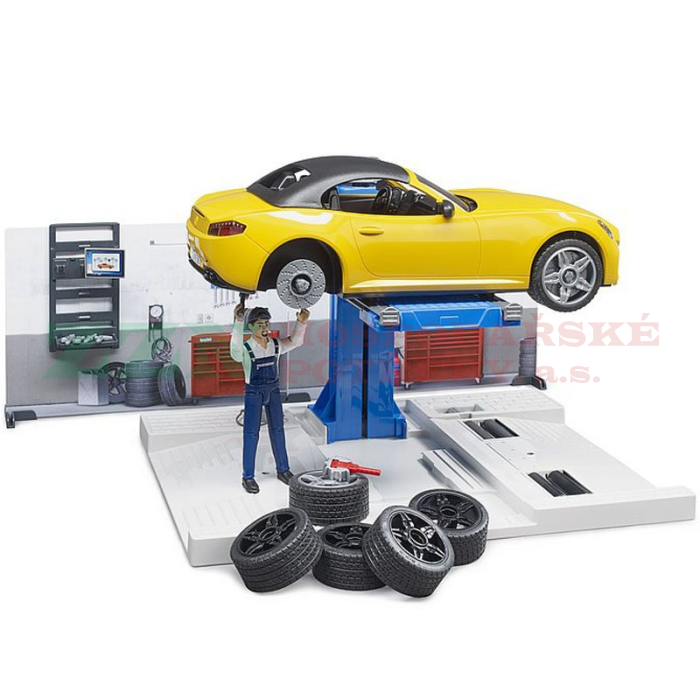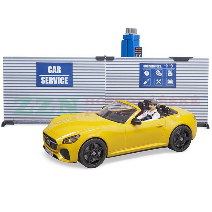 • Součástí sady je BRUDER Roadster, který se objednal na výměnu pneumatik.