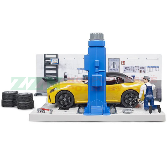 BRUDER 62110 Autodílna s mechanikem a autem
