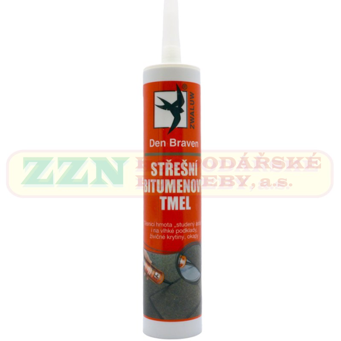 Tmel DEN BRAVEN střešní bitumenový pro drobné opravy a lepení živičných střešních krytin (šindelů) za studena, utěsňování zakončovacích plechů, oplechování komínů, atik. Dotmelování parapetových a štítových krytin, průchodů okapových svodů a přechodů střech. Nouzové opravy střech, okapů, tzv. přeplátováním. Podtmelování hřebenových krytin.