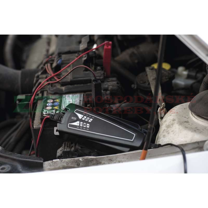 • Má celkem 4 režimy nabíjení ( 6 V, „motocykl“, 12 V a „chladné počasí“) - Ihned po zapojení sama diagnostikuje typ připojeného akumulátoru, zásluhou interního počítače, a vybere vhodný režim. Ten si můžete rovněž sami nastavit pomocí tlačítka MODE.
