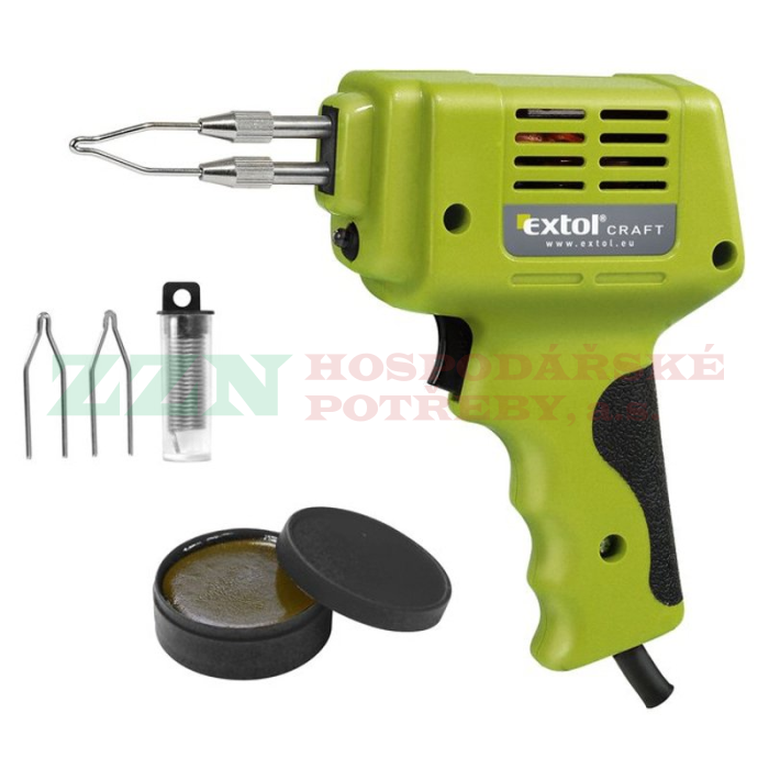 Transformátorová pájecí pistole EXTOL CRAFT 9923 je hobby nářadí pro domácí použití určené k vytváření pájených spojů pomocí cínové pájky, spojování plastů nebo vypalování do dřeva a kůže.