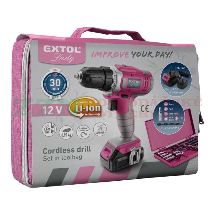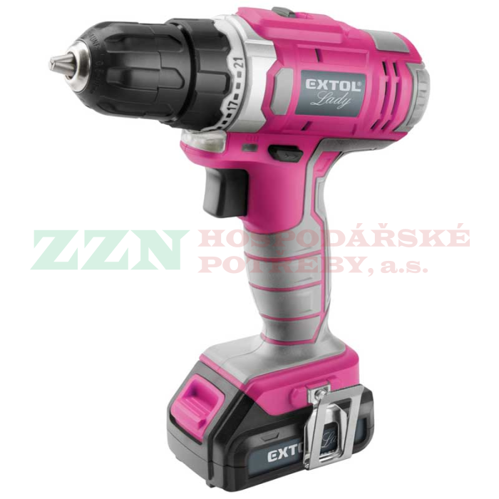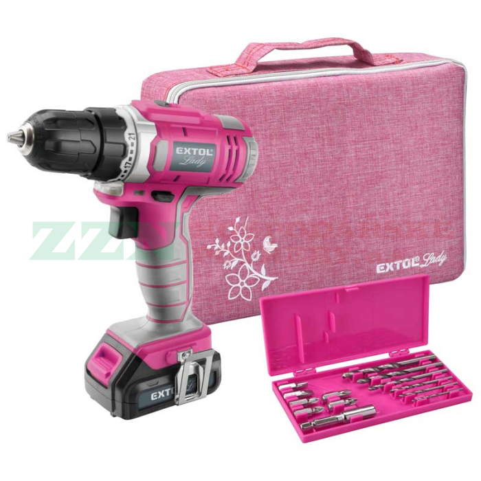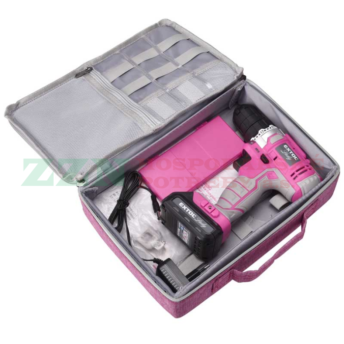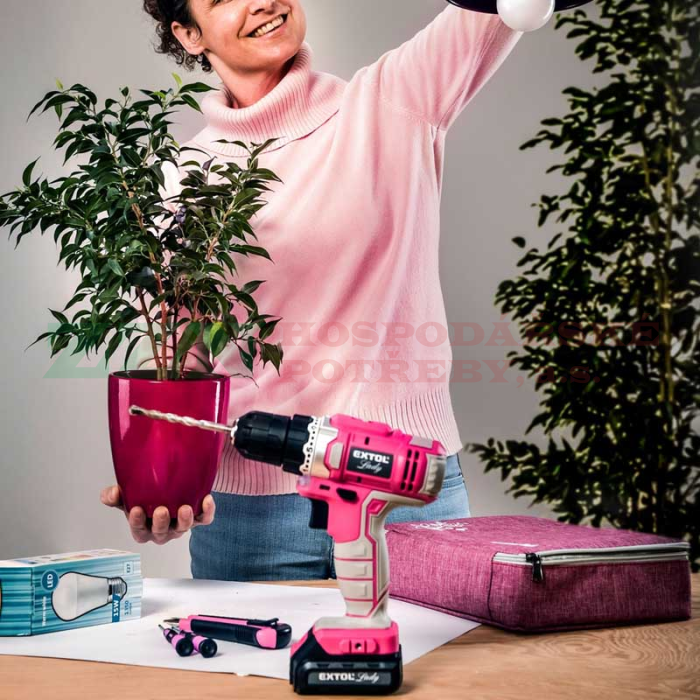 EXTOL Lady Aku vrtací šroubovák, růžový, 12V Li-ion, 1,3Ah, 402401