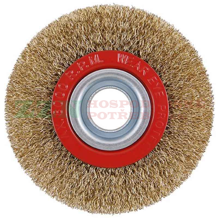 Okružní drátěný kartáč s mosaznými dráty je ideální pro jemné čištění a leštění kovů bez poškození povrchu. Kartáč je opatřen otvorem pro snadné uchycení na hřídel brusky či jiného elektrického nástroje.