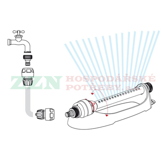 Oscilační zavlažovač s plynulou regulací stříkacího oblouku.