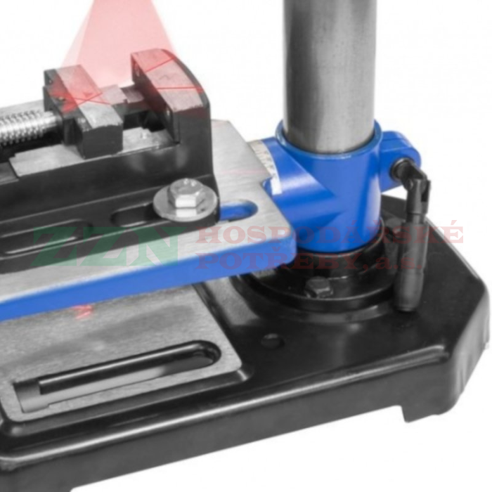 Sklíčidlo s ozubeným věncem pro nástroje a vrtáky O 3 - 16 mm (házivost: < 0,02 mm), nastavení hloubky vrtání (1 - 50 mm; pro větší série obrobků), sklopný pracovní stůl (vrtání pod úhly; rozsah: ± 45°).