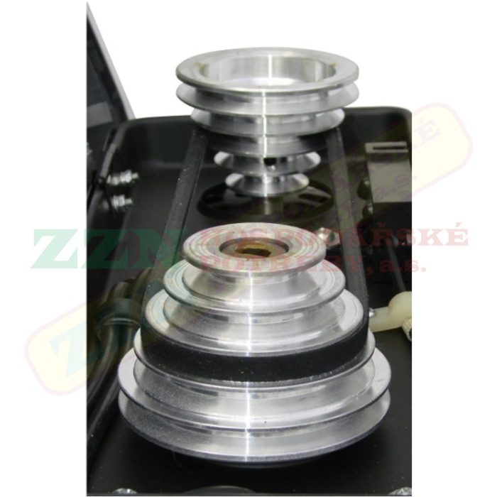 Konstrukce: hliníkové řemenice (2), vřeteno s přesnými kuličkovými ložisky, nastavitelný hloubkový doraz,