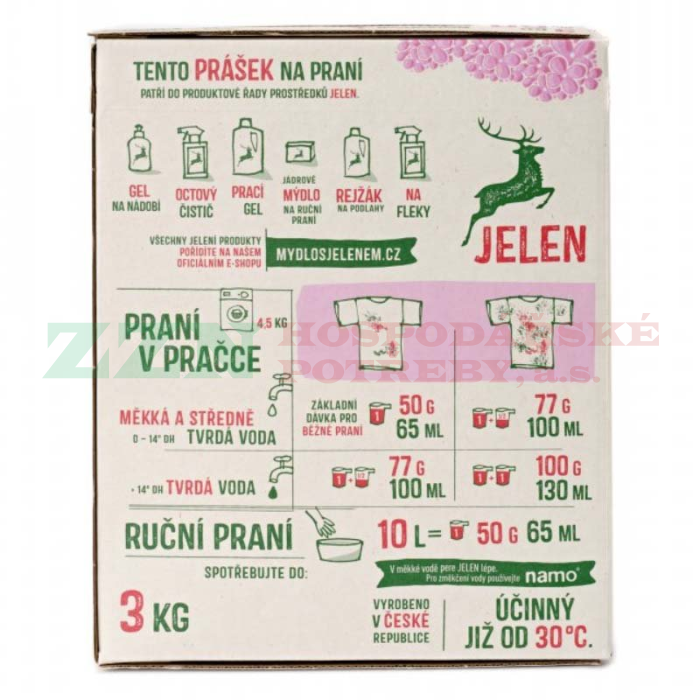 • Aby domov mohl vonět celý rok, připravil Jelen tento prášek, díky kterému bude prádlo krásně provoněné.