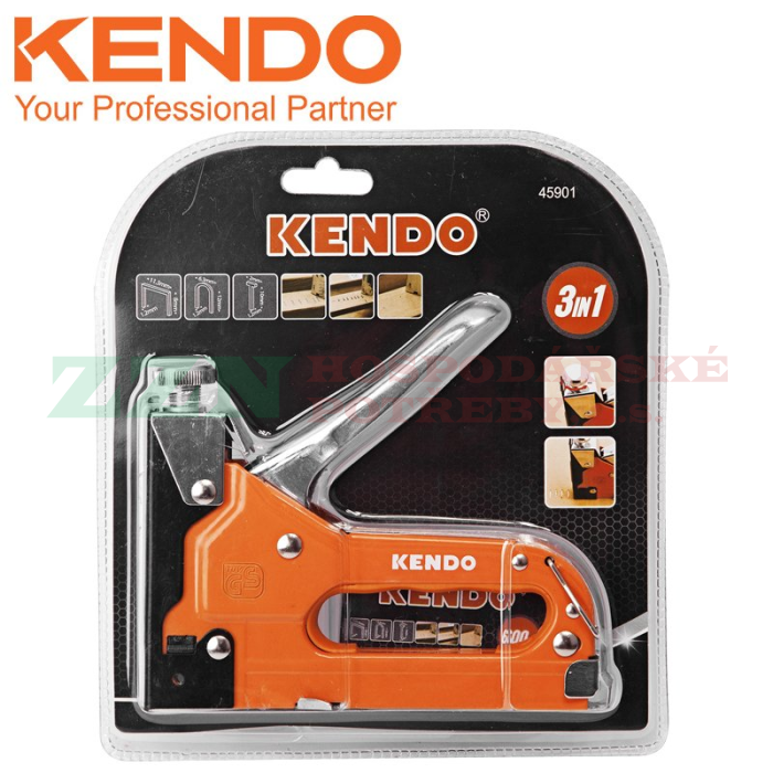 Sponkovačka KENDO 45901 je vybavena funkcí 3v1, umožňuje použití sponek, hřebíků a kabelových svorek.