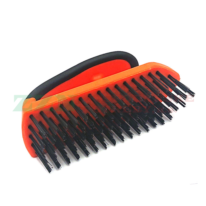 KENDO Drátěný kartáč s pěti řadami drátů a měkčenou ABS rukojetí pokrytou termoplastickou gumou.