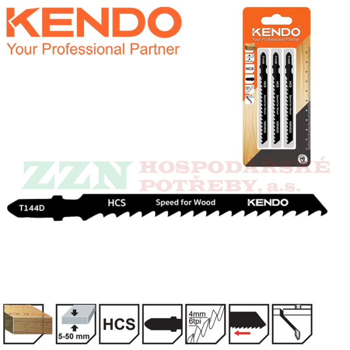 KENDO List pilový do přímočaré pily z vysokořezné oceli pro různé žezaní dřevěného materiálu T144D.