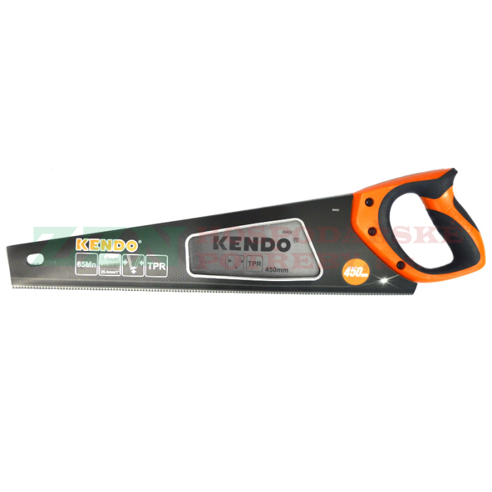 KENDO Ruční pilka ocaska pro jednoruční řezání dřeva s délkou ostří 450 mm, rukojetí z měkkého bi-materiálu v kombinaci pryže a gumy a tvrzenými kalenými zuby pro rychlé řezání.