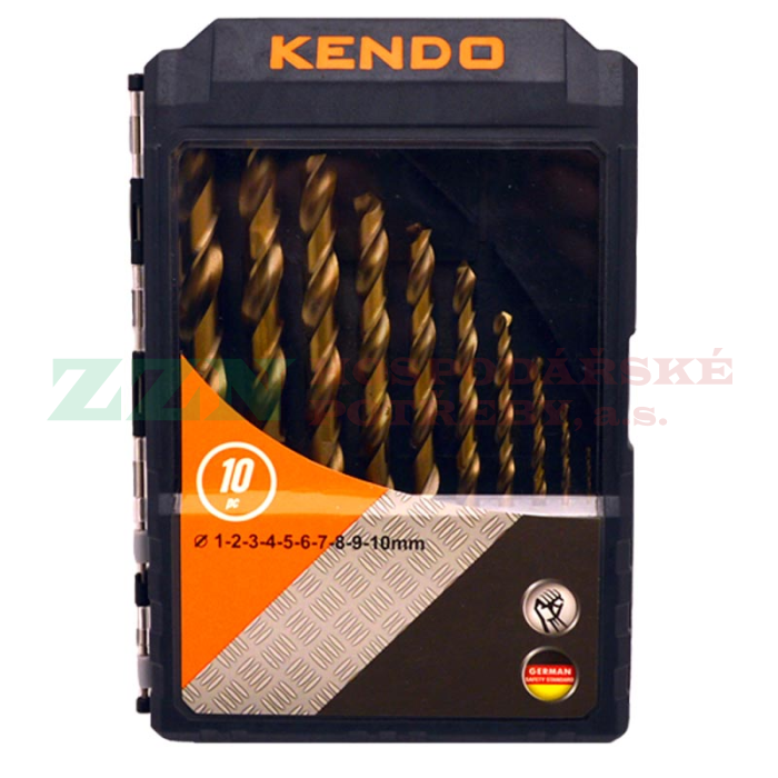 KENDO Sada kobaltových vrtáků do kovu HSS-Co, 10-dílná, 1,0 mm - 10,0 mm, spirálové, vybrušované vrtáky, vyrobené z vysokorychlostní oceli s 5% kobaltu.