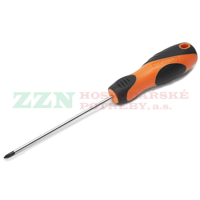 KENDO Křížový šroubovák s rukojetí z TPR pryže v kombinaci s plastem, CrV kov v matové úpravě.