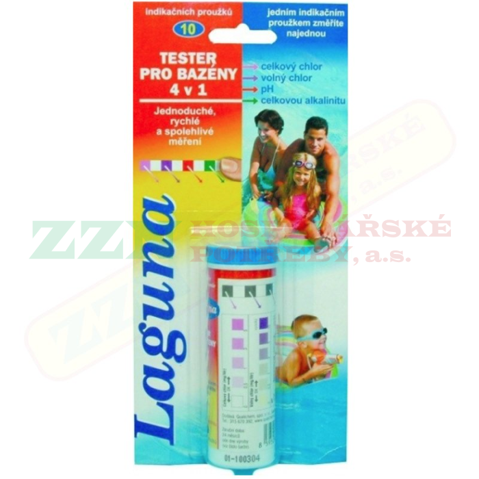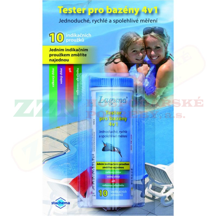 - Tester slouží k měření hodnot pH, obsahu chloru (celkového+ volného) a celkové alkalinity v bazénové vodě.