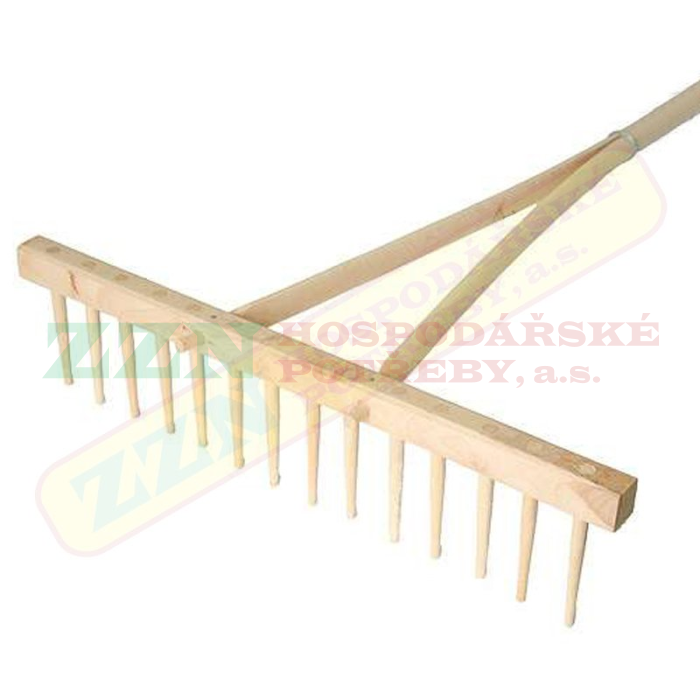 Hrábě nebo také hřeben dřevěný s násadou 165cm, 14 dřevěných kolíků - 468021