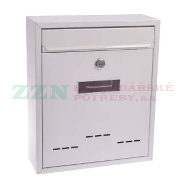 • Na přední straně schránky je otvor pro vhoz a výběr pošty společně s průhledným štítkem na jméno a zámečkem.