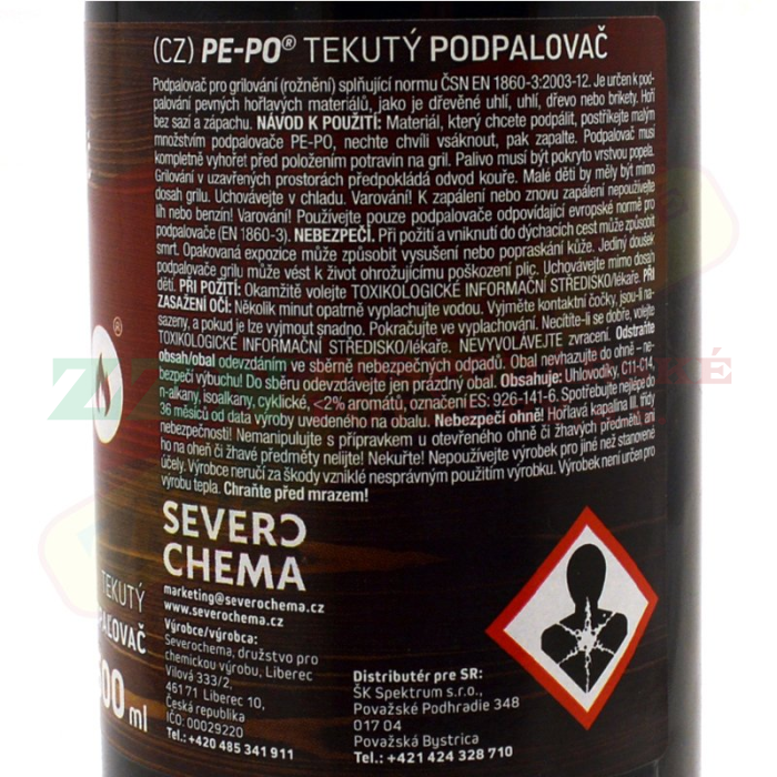 Podpalovač tekutý PE-PO je určen k podpalování pevných hořlavých materiálů, jako je dřevěné uhlí, uhlí, dřevo nebo brikety.