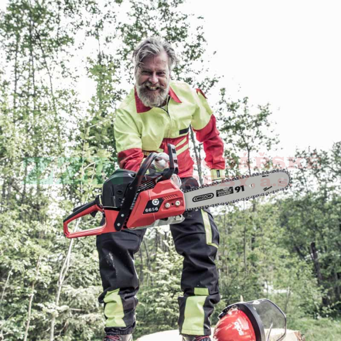 • Odolná originální lišta Oregon umožňuje pracovat rychle s řeznou délkou 38 cm a vyniká dobrou ovladatelností.