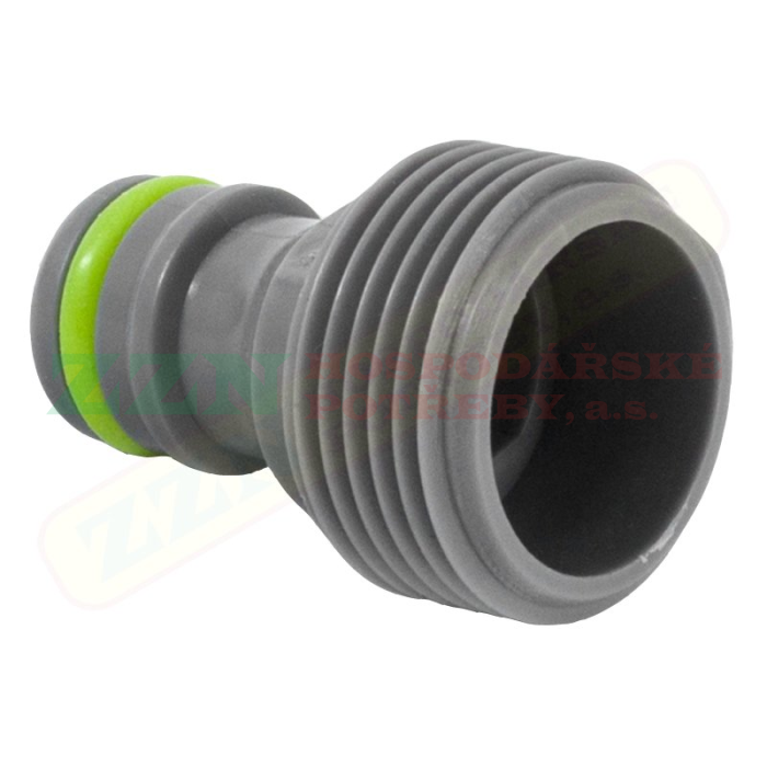 Plastový adaptér určený pro našroubování ke zdroji vody, postřikovačů a jiné zavlažovací techniky, na který se následně napojují rychlospojky s hadicí.