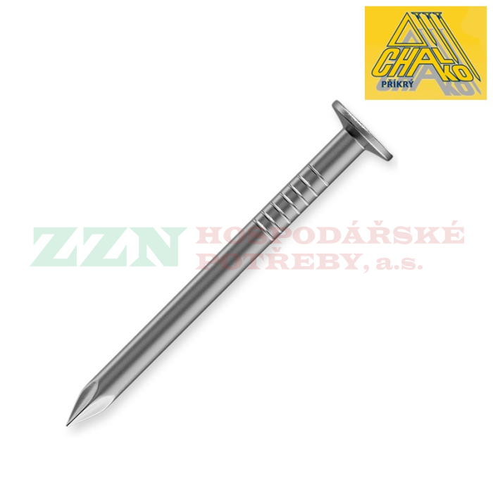 Stavební hřebík do dřevěných konstrukcí s plochou hlavou bez povrchové úpravy.