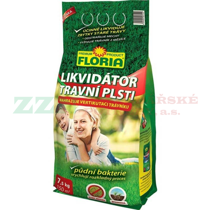 FLORIA Likvidátor travní plsti je unikátní speciální trávníkové hnojivo s obsahem všech základních živin (N/P/K = 9/3/5) vyrobené z čistě přírodních surovin a působící 2 měsíce.