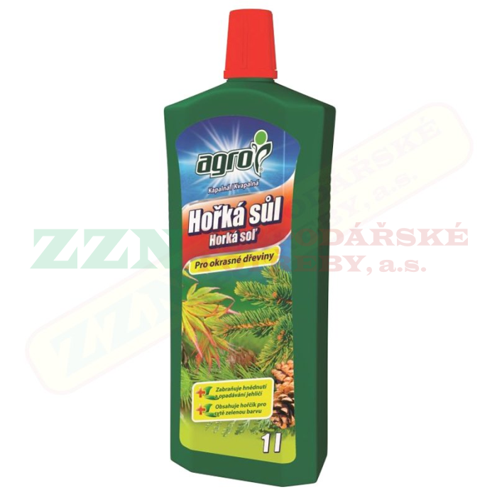 - Tekutá hořká sůl je nejvhodnější rychle působící hnojivo, které odstraňuje nedostatek hořčíku - důležitá živina všech zahradních plodin, tj. okrasných rostlin, ovoce i zeleniny.