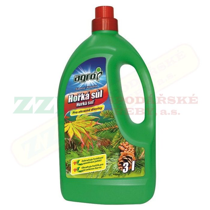 - Tekutá hořká sůl je nejvhodnější rychle působící hnojivo, které odstraňuje nedostatek hořčíku - důležitá živina všech zahradních plodin, tj. okrasných rostlin, ovoce i zeleniny.
