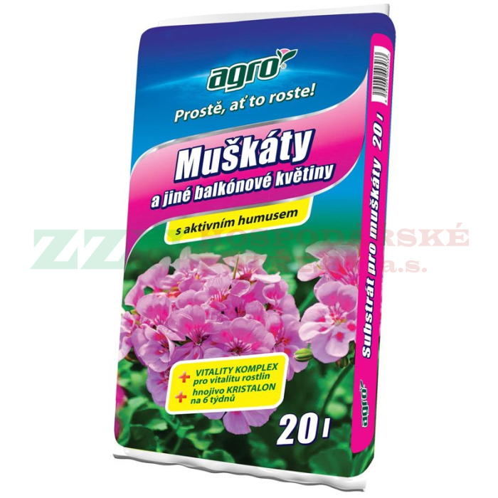 AGRO Substrát pro muškáty a jiné balkónové květiny je speciálně vyvinut pro potřeby pěstování balkónových rostlin, které potřebují k růstu a bohatému kvetení vysokou dávku živin.