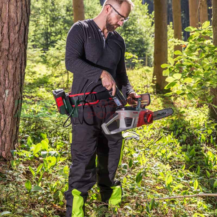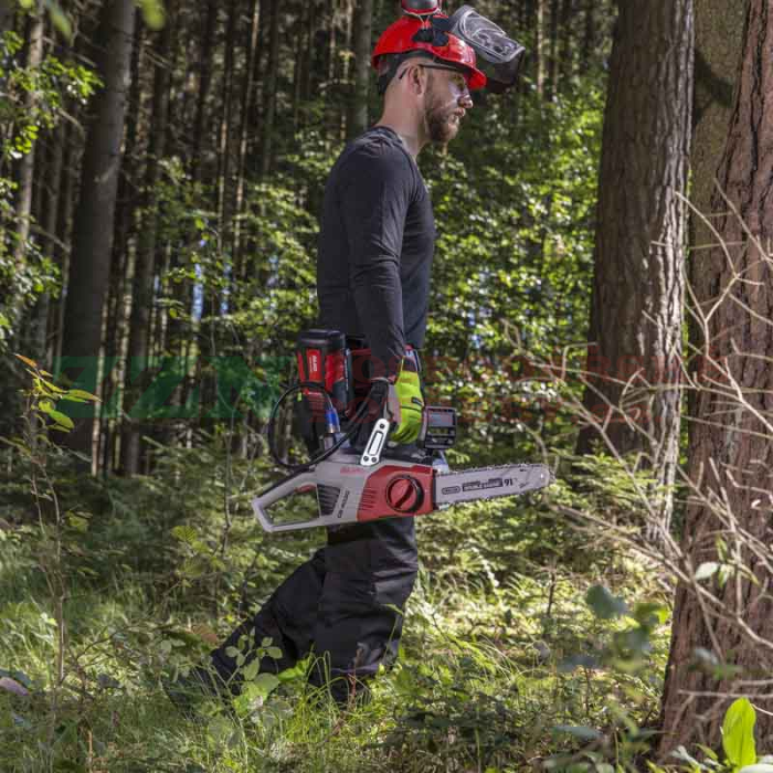 • Tato akumulátorová řetězová pila vás přesvědčí svým štíhlým tvarem, nekompromisní výbavou a bezkabelovým napájením z akumulátoru Li-Ion bez emisí.