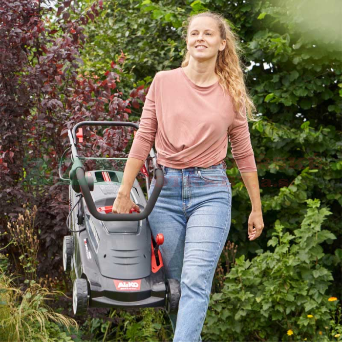 • Elektrická sekačka od firmy AL-KO 34.4 E Comfort disponuje výkonem 1200 W a funguje bez výfukových plynů, hluku a starostí o motorový olej a palivo.