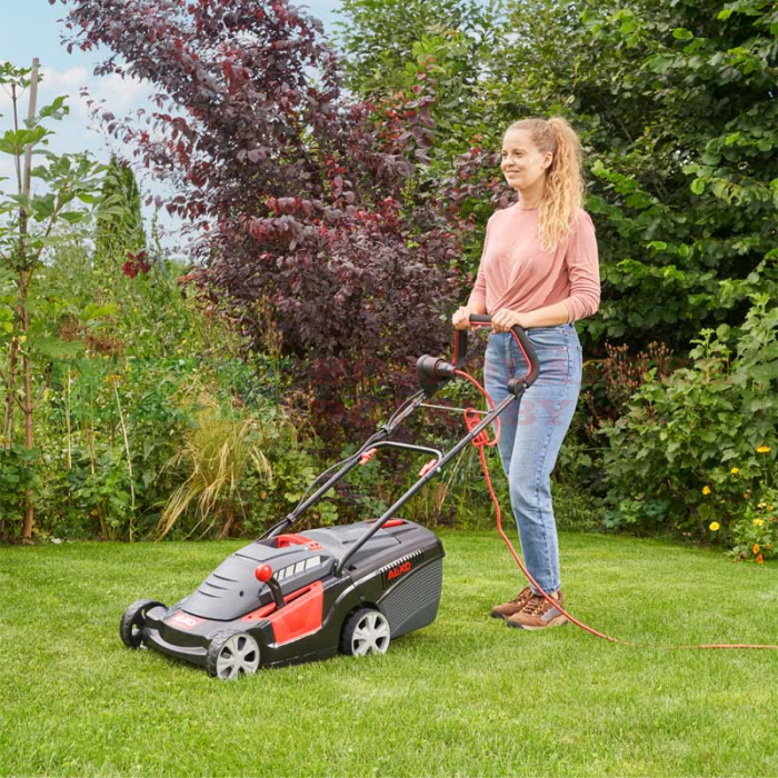 • Pro Vaší bezpečnost: Díky bezpečnostnímu spínači se zabezpečením kabelu proti vytržení ze zásuvky je startování i provoz sekačky zcela bezpečný a snadný.