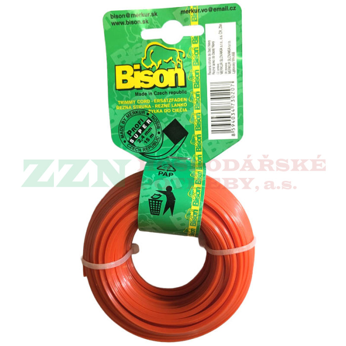 BISON SUPER PROFI je odolná žací struna se čtvercovým průřezem, vyrobená z kopolyamidu 6/12. Tento materiál nabízí výrazně vyšší trvanlivost než běžné silonové nebo standardní nylonové struny dostupné na trhu.