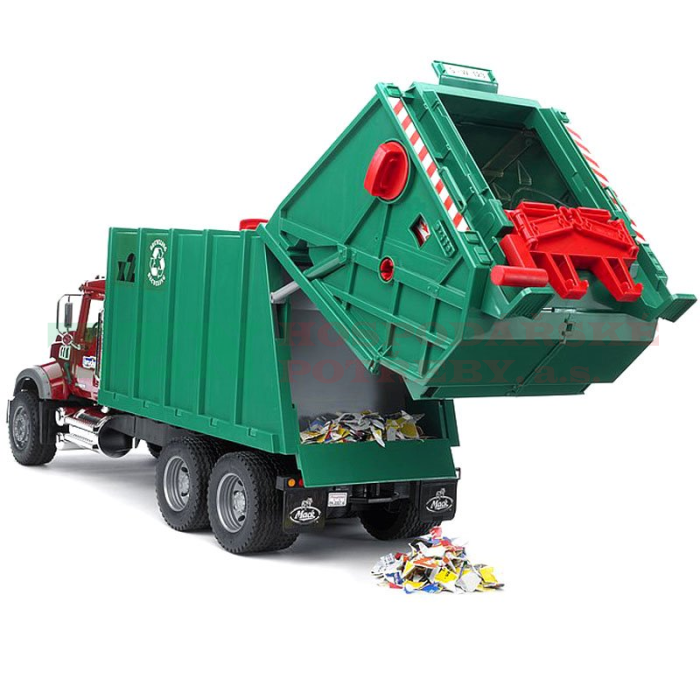 • Nákladní auto MACK Granite popelář je dokonalý model amerického popelářského automobilu se zadním plněním a otevírací přední kapotou vozu.