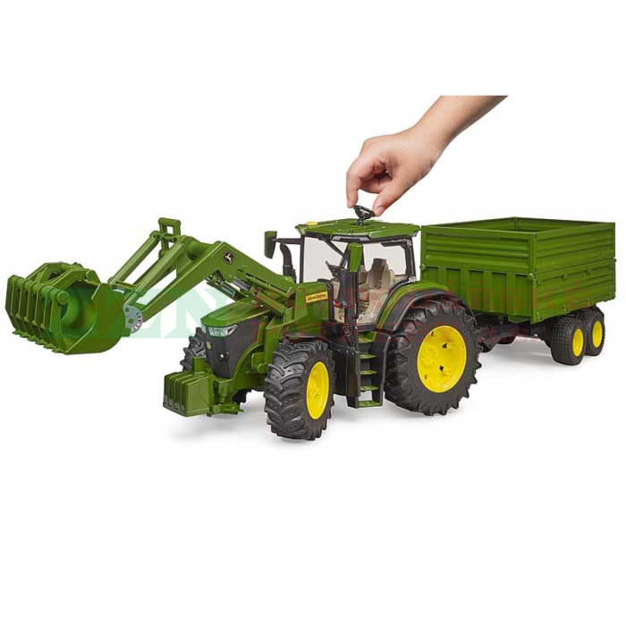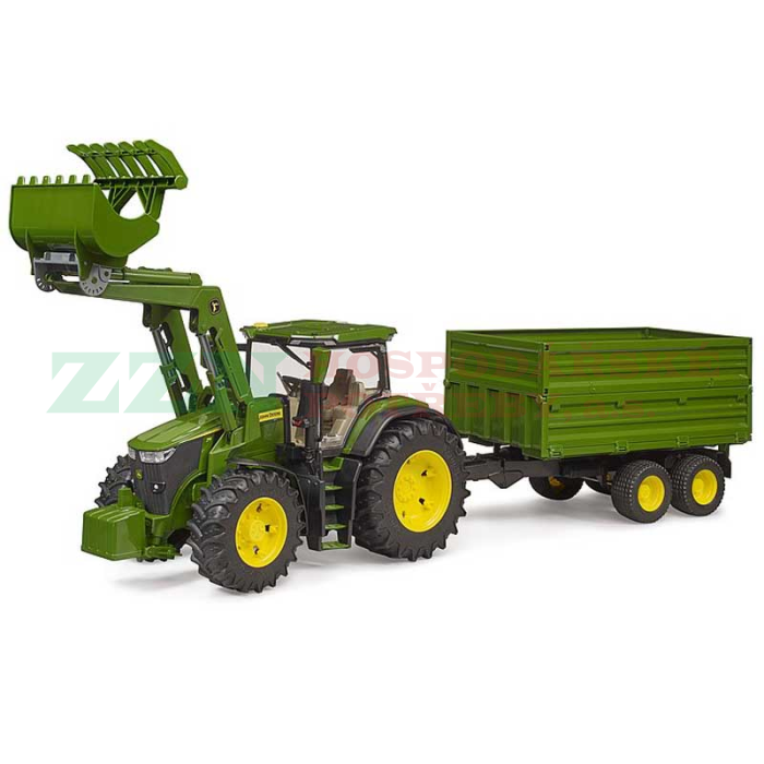 BRUDER 3155 Traktor John Deere 7R 350 s čelním nakladačem a přívěsem
