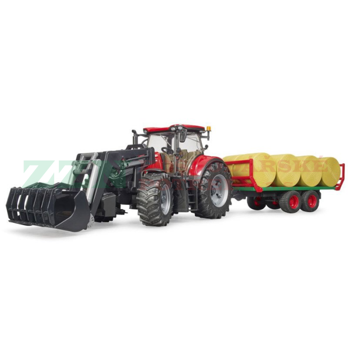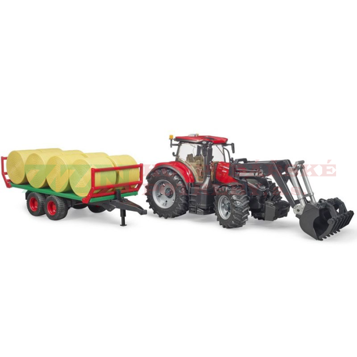 BRUDER 3198 Traktor Case IH Optum 300 CVX s čelním nakladačem a přepravníkem na balíky