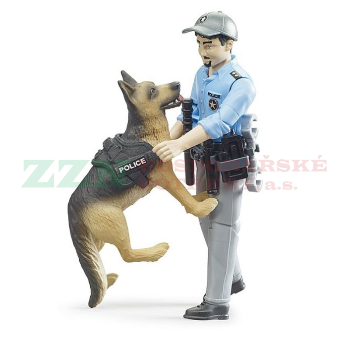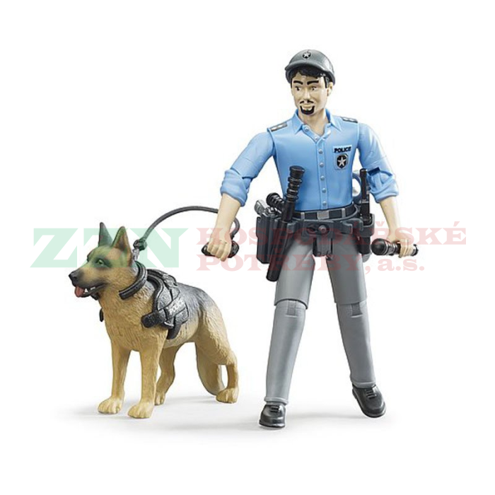 • Vybavení policisty: vodítko, postroj pro psa, policejní pes, obušek, opasek, baterka, pistole