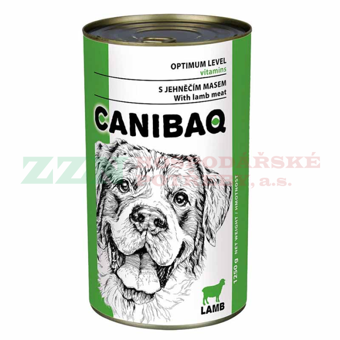 CANIBAQ Konzerva pro psy jehněčí 1250 g - jehněčí, s jehněčím masem.