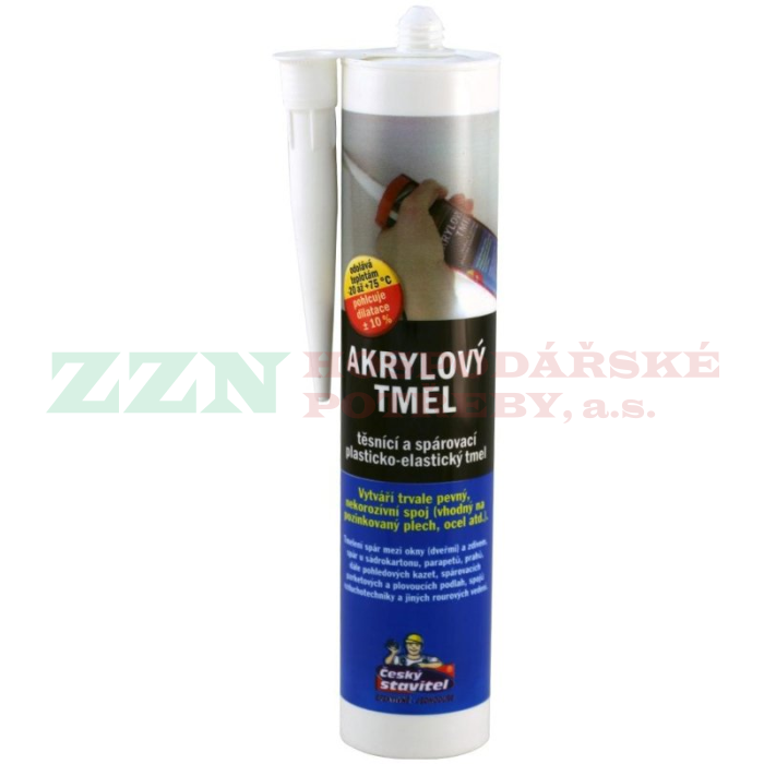Tmel ČESKÝ STAVITEL akrylový pro tmelení rohových spár v sádrokartonu, prasklin zdiva, omítek, betonu a dřeva, tmelení kolem rámů oken, dveří, okenních parapetů, prahů, spárování mezi zdivem a soklovou lištou podlah apod. Neobsahuje rozpouštědla. Na kovy nepůsobí korozivně. Po vyzrání je přetíratelný. Není vhodný na místa, která jsou trvale vystavována vlhkosti.