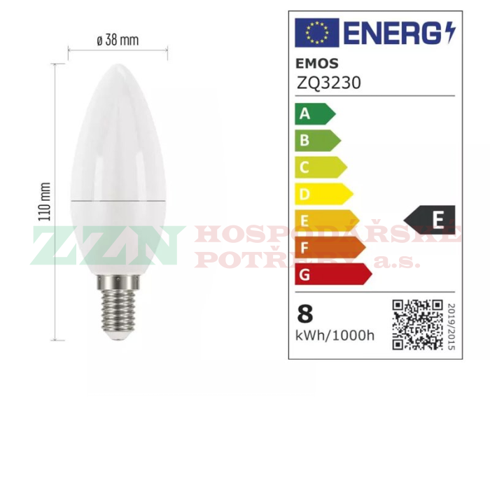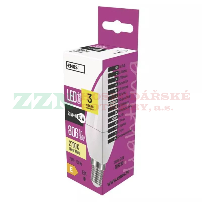 EMOS Žárovka LED 7,3W E14 svíčka WW ZQ3230