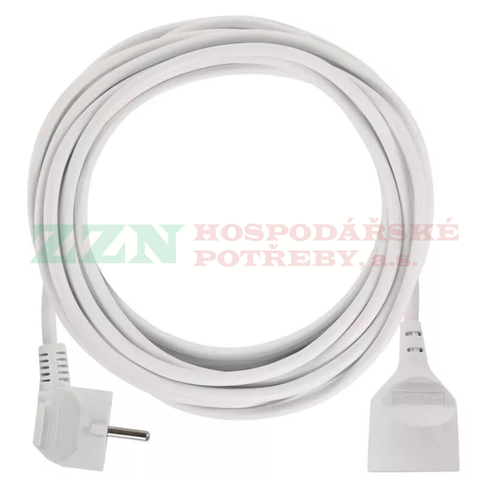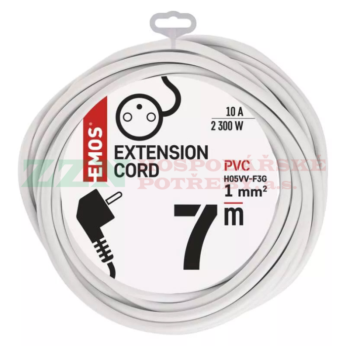 • Bílý prodlužovací přívod s jednou zásuvkou - spojka, délkou 7 m a průřezem vodiče 1 mm2.