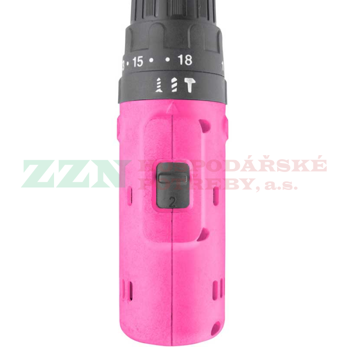 • Vrtačka je uložena v pěkném růžovém kufru spolu s dalším nářadím pro základní práce v bytě.