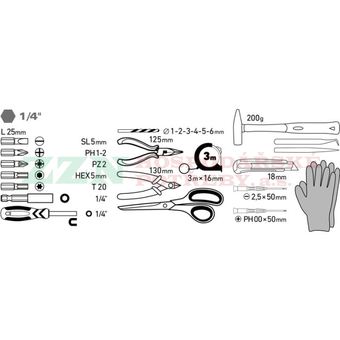 • Příslušenství: vrtáky 1-2-3-4-5-6mm, bity (-) 5-6mm, PH 1-2, PZ 1-2, sada 12ks aj.