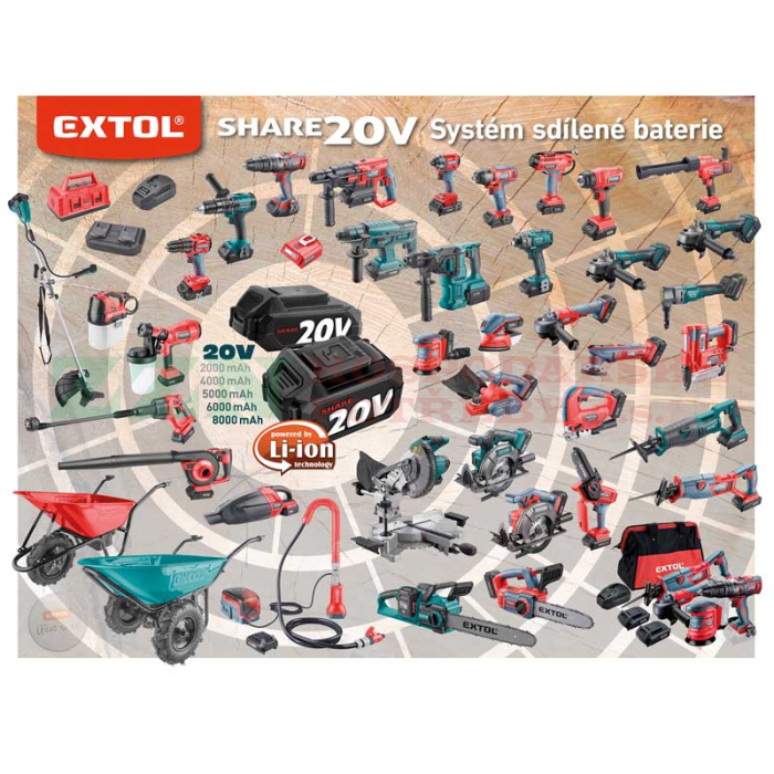• Akumulátor lze použít ve všech typech nářadí řady EXTOL SHARE20V.