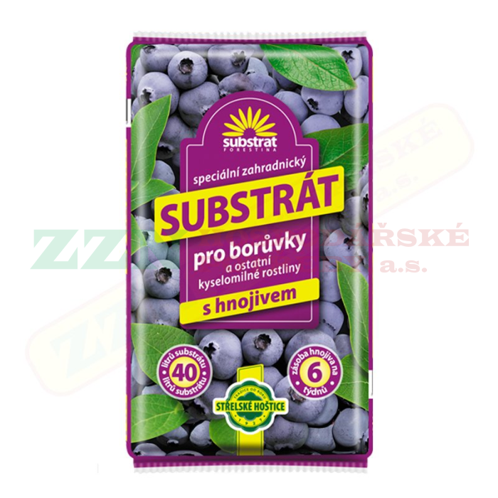 Substrát je přednostně určen pro sázení a přesazování kanadských borůvek a dalších kyselomilných rostlin.